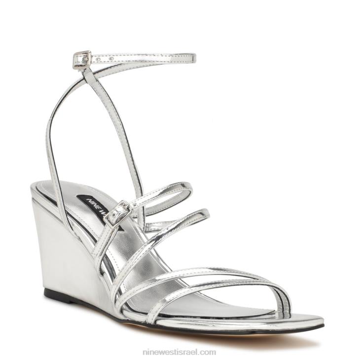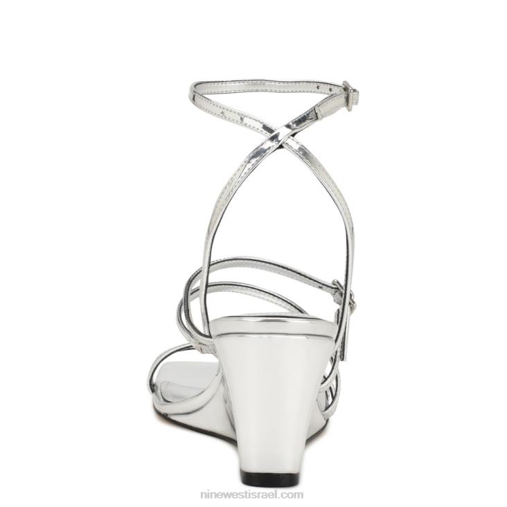 Nine West 24FH1128 סנדלי טריז עם רצועת קרסול מראה כסף מתכתי