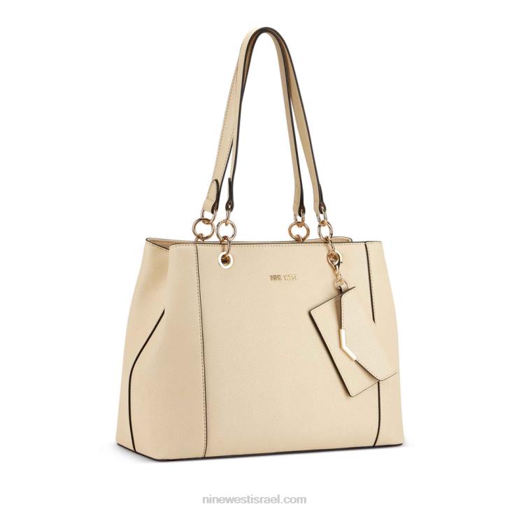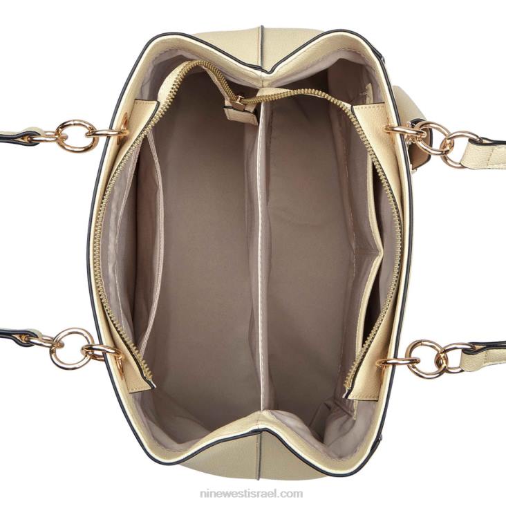 קניית סט סילוני בזיליקום מעוצבת 9 מערב עם פרטי חומרה ומיתוג חיצוני. רוכסן עליון ורצועות מפורטות בשרשרת.