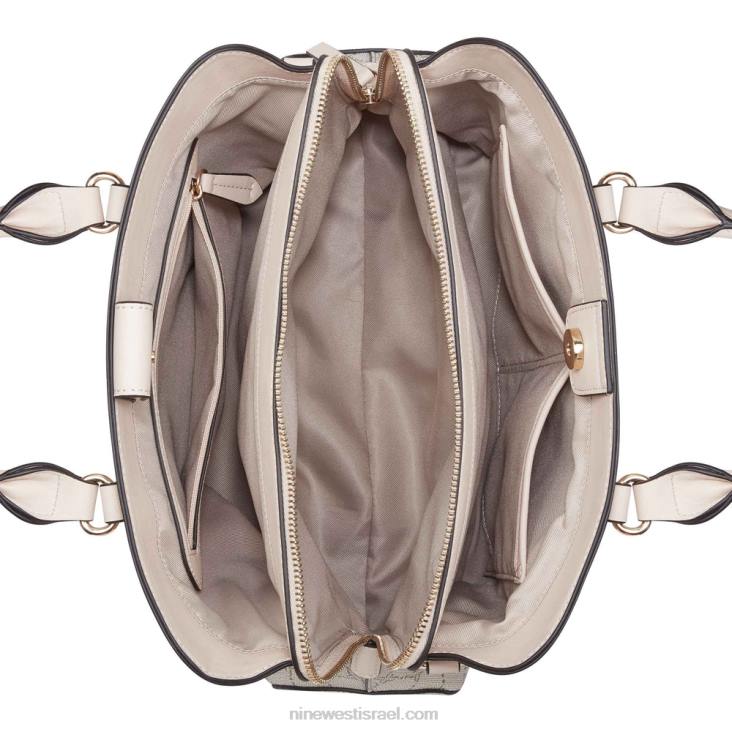 ילקוט מרגרט סילון של nine west מעצב עם פרטי חומרה ומיתוג חיצוני. מעוצב בדוגמת לוגו חתימה.