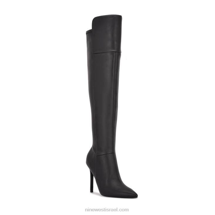 Nine West 24FH1698 מגפיים עם עקבים מעל הברך עור שחור