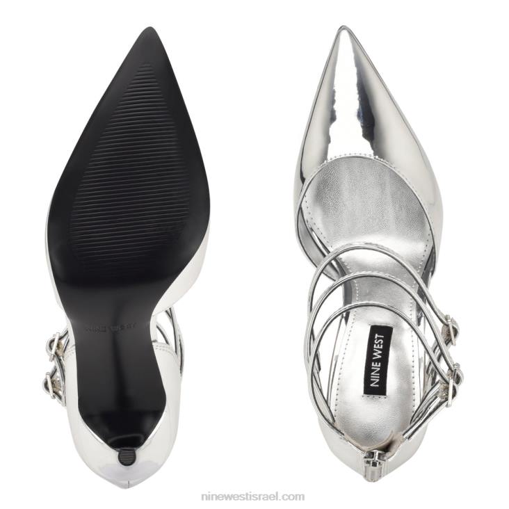 Nine West 24FH1605 משאבות רצועות של פראן ד'אורסי מראה כסף מתכתי
