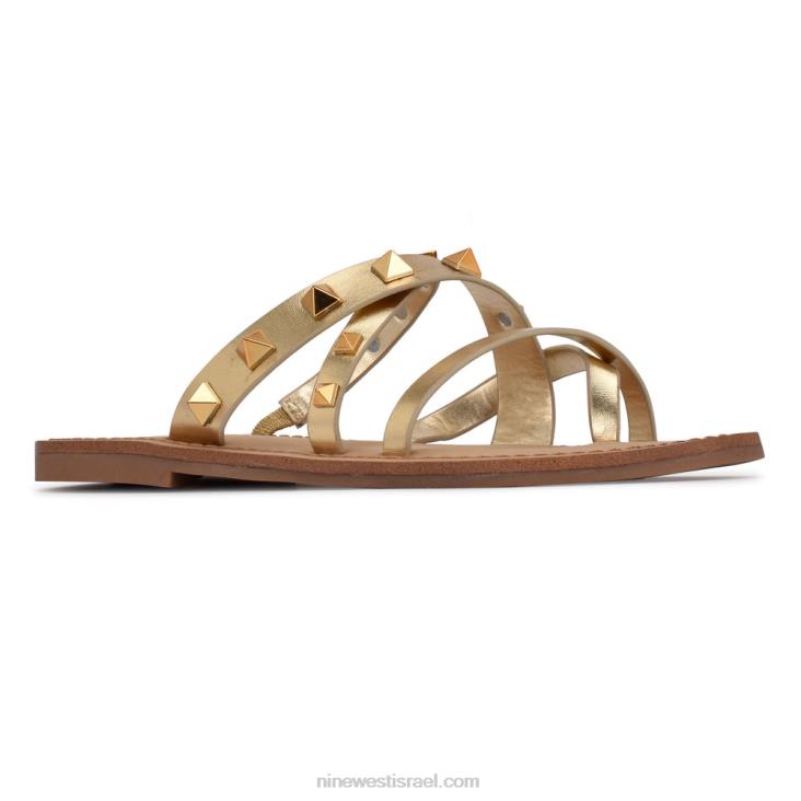 סנדל nine west cerri מוסיף נופך של גלאם לכל תלבושת מזדמנת במזג אוויר חם. הסנדל השטוח הזה כולל רצועות צולבות משובצות אסימטריות ברוחב משתנה ועיצוב אופנתי של טבעת בוהן.