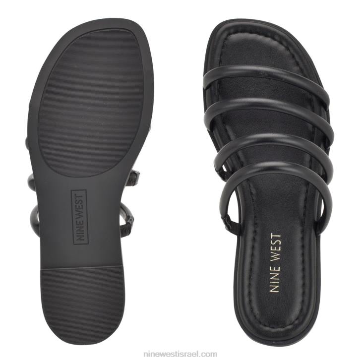 Nine West 24FH53 סנדלי החלקה שטוחים בשמחה שָׁחוֹר