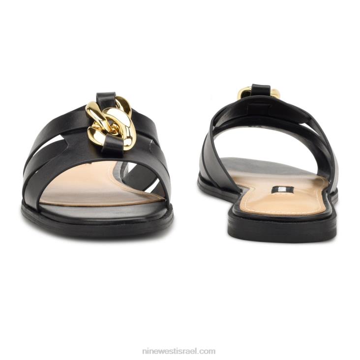 Nine West 24FH56 סנדלי החלקה שטוחים של ganlee שָׁחוֹר