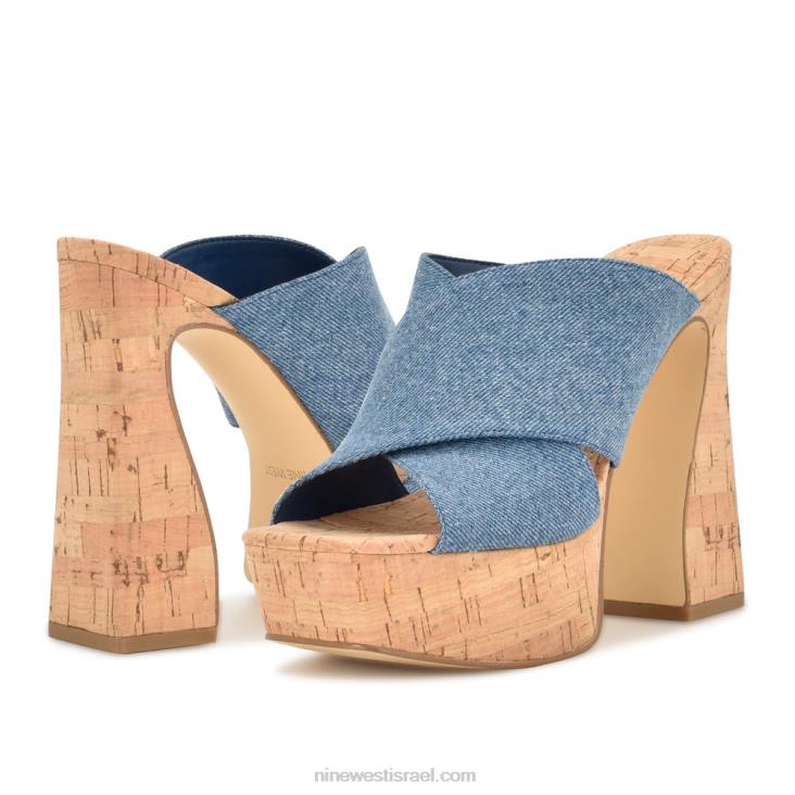 Nine West 24FH178 סנדלי פלטפורמה של girlz ג'ינס כחול