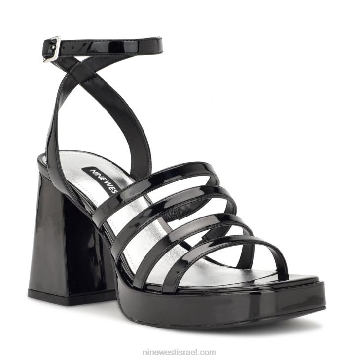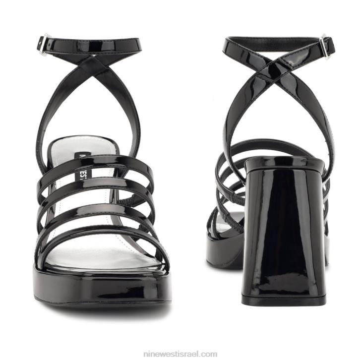 Nine West 24FH282 סנדלי פלטפורמה עם רצועות טריס פטנט שחור