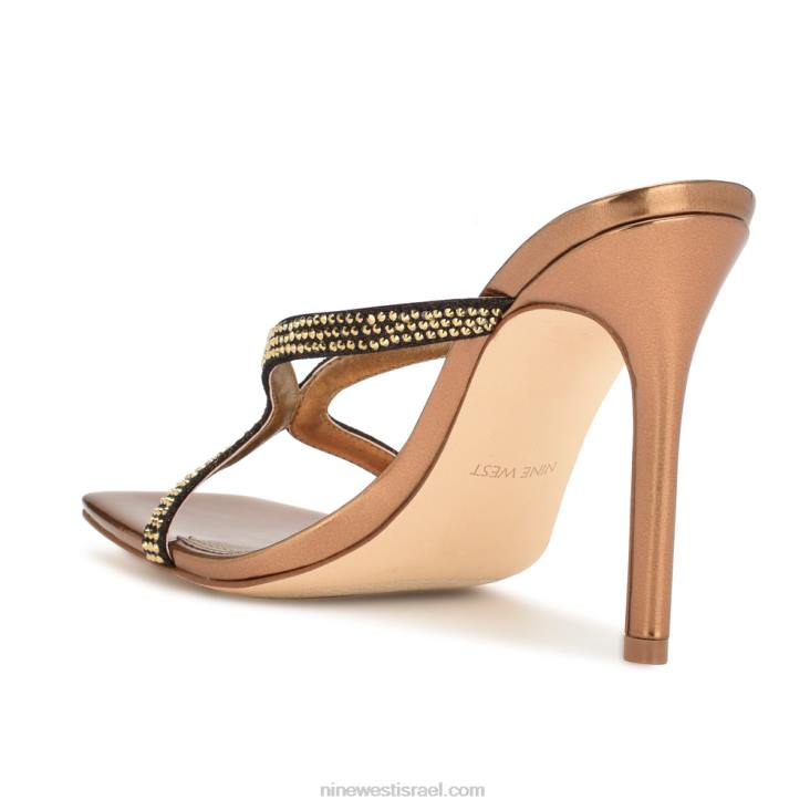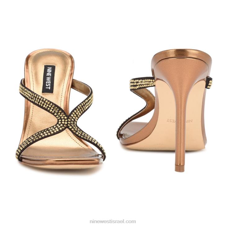 Nine West 24FH369 סנדלי שקופיות עם עקב טוויסט זהב כהה