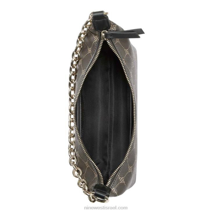 Nine West 24FH2678 תיק כתף רוכסן עליון שחור חום