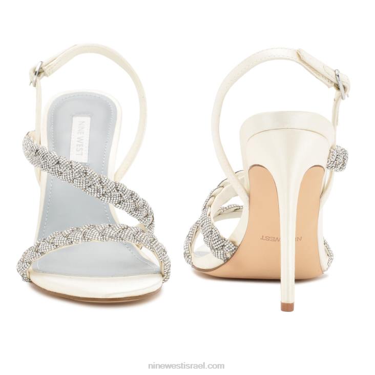 Nine West 24FH1820 סנדלים עם עקבים נצמדים קריסטל סאטן שנהב